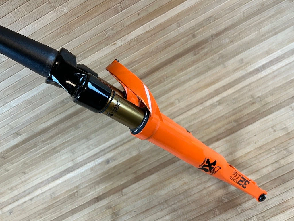 2023_22 32 K FLOAT TC 700c F-S 40 FIT4 3Pos-Adj Shiny Orange Black/Clear Logo Kabolt 12×100 1.5 T 45mm Rake Shiny Blk AM