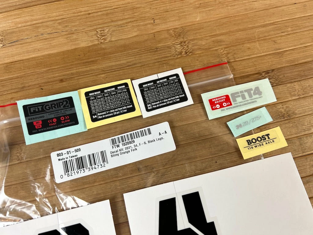 Fox Decal Kit 34 2021 F-S Black Logo / Shiny Orange